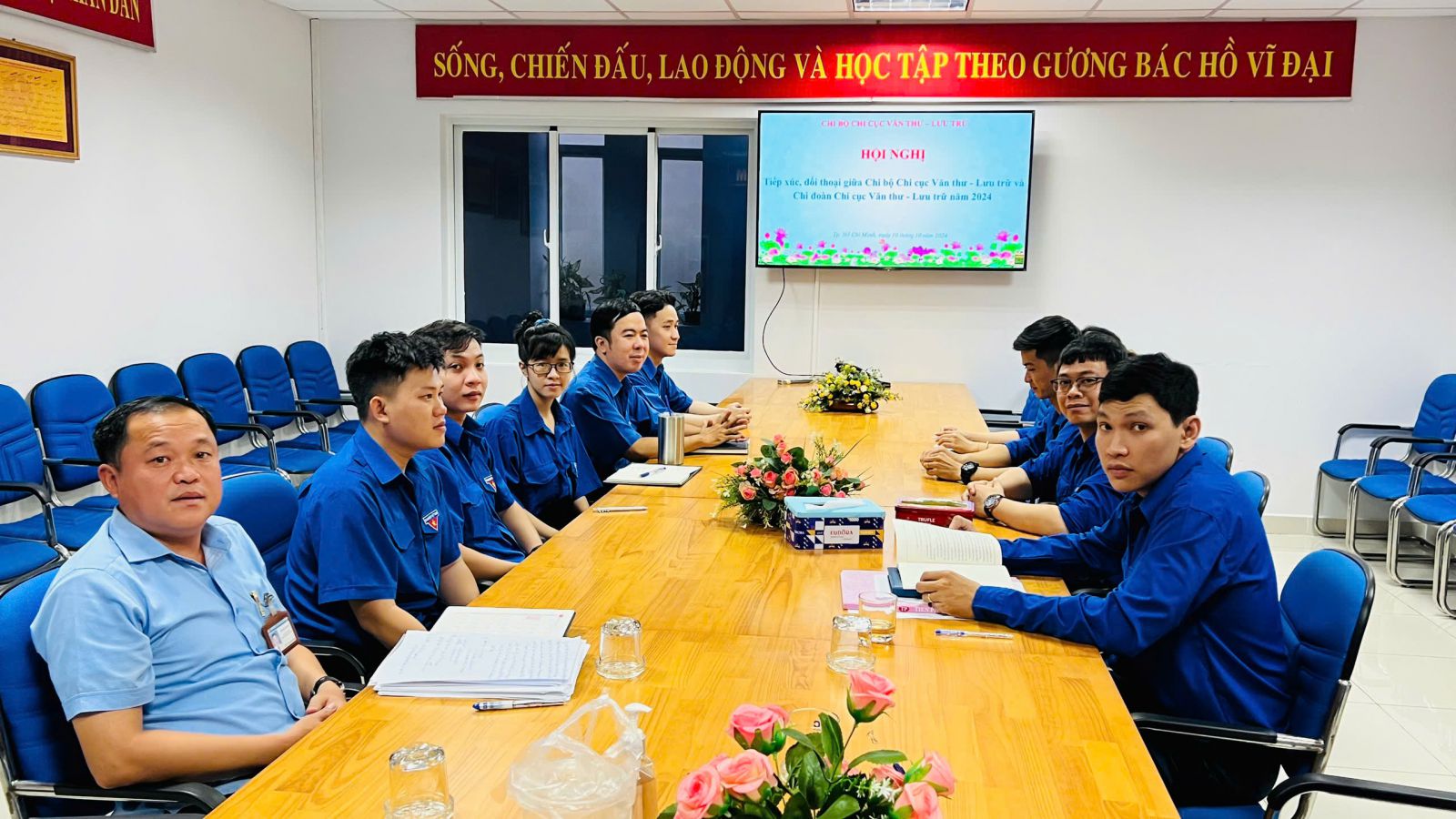 Chiều ngày 10 tháng 10 năm 2024, Chi đoàn cơ sở Chi cục Văn thư - Lưu trữ Thành phố tổ chức Hội nghị tiếp xúc, đối thoại giữa Chi bộ và Chi đoàn năm 2024. Tham dự có ông Phan Long Hồ - Bí thư Chi bộ, Chi cục trưởng Chi cục Văn thư - Lưu trữ và toàn thể đoàn viên Chi đoàn .jpg) Tại hội nghị, các đồng chí đoàn viên trực tiếp nghe đồng chí Bí thư Chi bộ trao đổi về công tác giáo dục chính trị, tư tưởng, giáo dục truyền thống; Trách nhiệm của đoàn viên trong: Tham gia xây dựng Đảng, đơn vị trong sạch vững mạnh, trong công tác Đoàn và công tác chuyên môn; những chủ trương, chính sách của cơ quan đối với đoàn viên thanh niên,…  Dịp này, đồng chí Bí thư Chi bộ còn giải đáp tất cả các ý kiến, thắc mắc của các đoàn viên và động viên đoàn viên yên tâm công tác, tích cực tham gia các hoạt động phong trào, góp phần đóng góp vào thành tích chung của cơ quan, của Sở. .jpg) Hội nghị đối thoại là dịp để cấp ủy, lãnh đạo Chi cục trực tiếp lắng nghe, nắm bắt tâm tư, nguyện vọng, những ý kiến, đề xuất, kiến nghị và hiến kế của cán bộ Đoàn, đoàn viên trong quá trình thực hiện chủ trương, đường lối của Đảng, chính sách, pháp luật của Nhà nước; từ đó đề ra hướng triển khai, tổ chức thực hiện có hiệu quả các hoạt động, phong trào của Đoàn Thanh niên trong thời gian tới tại cơ quan, đơn vị./.